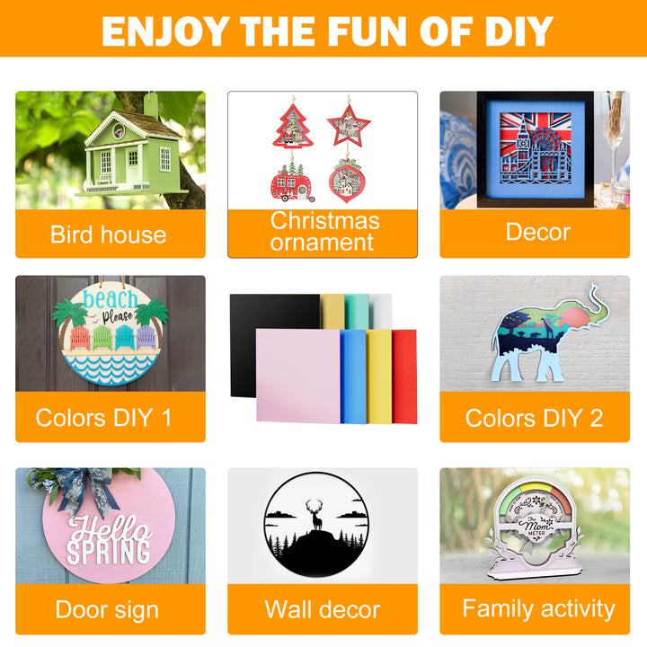 Elevate your crafting with our Multi-Color Plywood Sheets, featuring 8 pieces of 30x30cm, 3mm laser-safe plywood. Ideal for precise laser cutting, engraving, and painting, these sheets are perfect for DIY enthusiasts, professionals, and Sculpfun users.