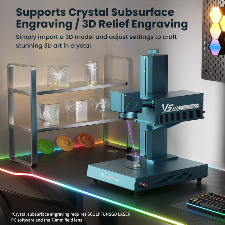 The UV laser can directly penetrate crystal to etch delicate floating 3D patterns inside without damaging the surface, creating a stunning visual effect as if it were floating in mid-air.
