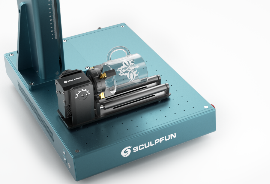 When paired with a chuck and roller, it enables engraving on cylindrical surfaces
